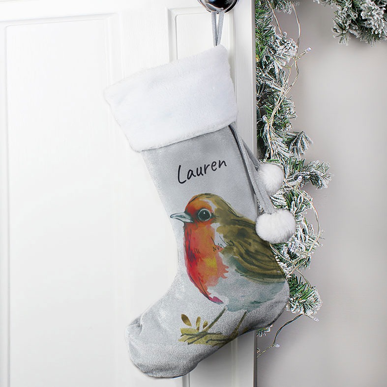 The lovely robin illustration has a timeless and classic appeal, meaning this charming personalised Santa stocking will be enjoyed for years to come.